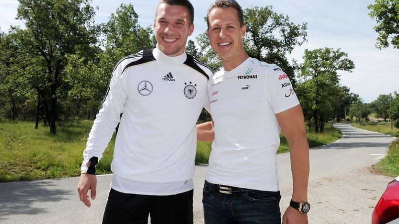 Sedemnásobný majster sveta Schumacher bojuje po nedeľňajšej nehode na lyžovačke o svoj život. Nemecký útočník "kanonierov" Lukas Podolski uverejnil prostredníctvom svojho profilu na Facebooku fotografiu zo šatne, na ktorej drží so svojimi klubovými spoluhráčmi tričko s nápisom "Schumi, skoro sa uzdrav".
