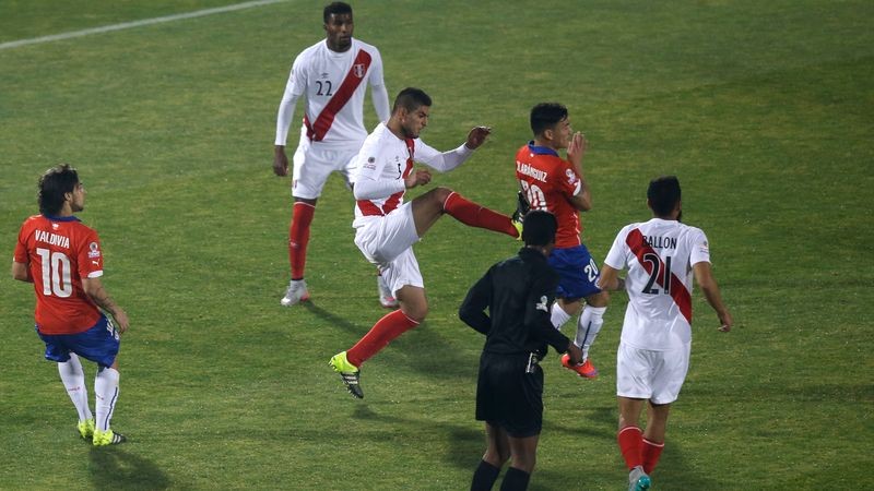 Peru napriek vylúčeniu bolo pre domácich náročným súperom. V závere prvého polčasu otvoril skóre z ofsajdovej situácie Vargas, po prestávke ho zasa arbitri obrali o regulárny gól. Peru vyrovnalo po hodine hry, keď si Gary Medel zrazil strieľaný center do vlastnej siete. Remíza bola len štyri minúty, keďže Vargas trafil presne z 22 metrov.